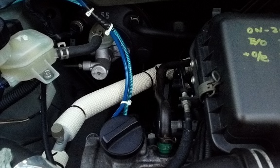 その後のことは割愛するが、どうにもこうにも冷えが「イマイチ」のため、応急処置的にエンジンルーム内の低圧ガス側パイピングをヒートインシュレータでカバーしてみた。すでにエヴァポレータを抜けた後なので関係ないのかもしれないが、コンデンサーへ流入するガス温度が少しでも低い方がいいのでは?という、素人考えだ。狭いエンジンルーム内で地獄のように熱い中を剥き出しのパイピングが走っており、常にエンジンの排熱にさらされているのだから尚更だ。