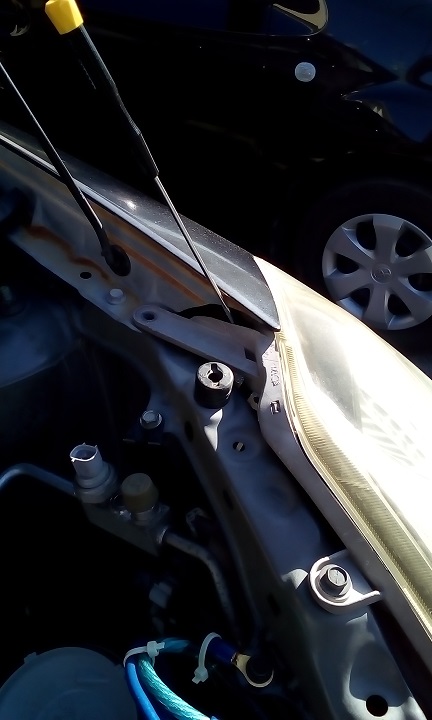 フェンダーとライトASSYの隙間からドライバーを突っ込んでアシスト。(みんカラを参考に)