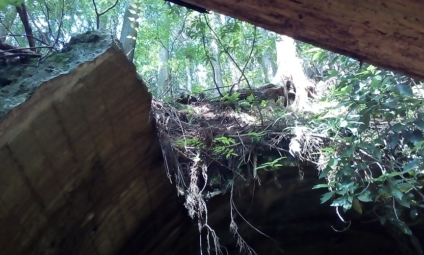 当時の様子が分からないほど崩壊した長原前の隧道出口。トンネル前に駅があった・・・と言われても