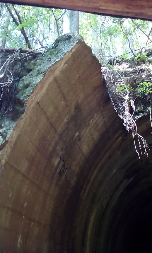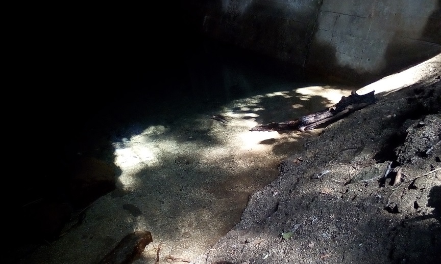 隧道内の雨水が掃けず池のやうになってゐる。余計な流入がないためか溜まった水の透明度は非常に高く驚かされた。