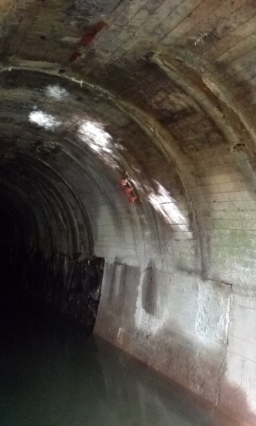 隧道内の様子。水面に太陽の光が反射して壁面を照らしている。