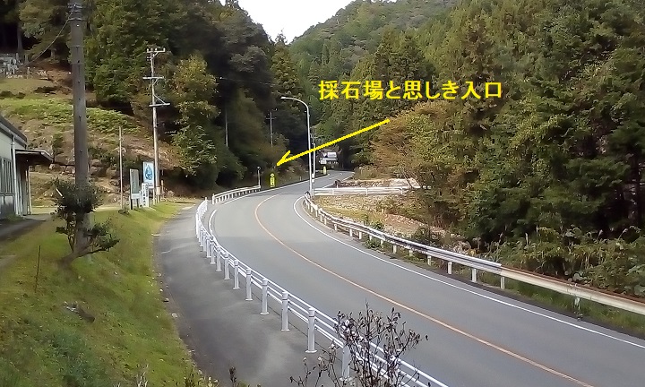 滝上から稲目隧道へ向かう途中、左側に採石場が在った。