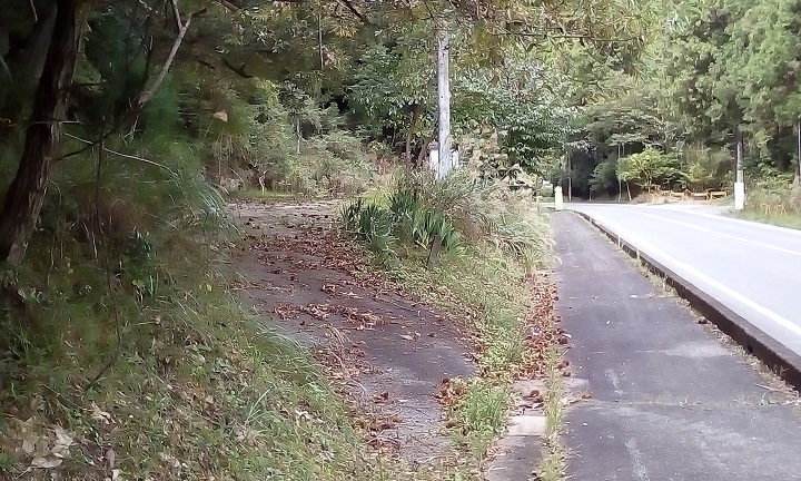 軌道跡(路盤)の高垣が消失してゐる場所。本来であれば路盤はもっと右側に切り込んでゐて