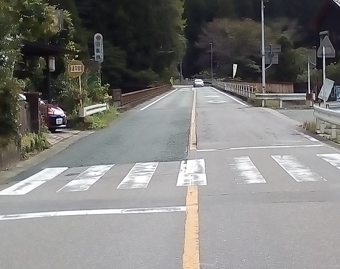 舗装路中央付近、下がり切ったところ右側に瀧上橋があり、県道32号へと繋がってゐる。