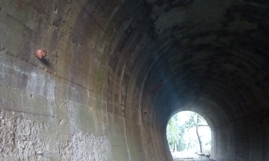 海老隧道内部。若干左側へ「ひしゃげて」いるやうな感じを受けるのは氣のせいだらうか。