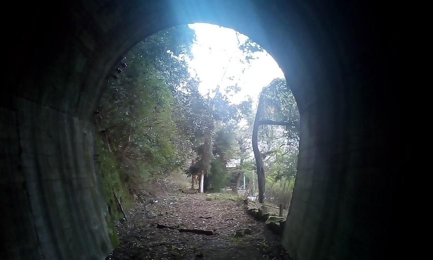バス停より短めの坂を上がると、右側に海老隧道、左側に滝上停留場ホーム跡を確認出来やう。三河大草停留所のやうな鬱蒼とした感覚とは違うが、切通しに残る緑に囲まれたホーム跡は過ぎた時を感じさせてくれる。