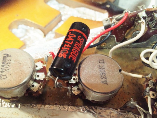 学生時代にキャビティやピックガード裏にはアルミ箔を貼り、ノイズ対策をしていた。