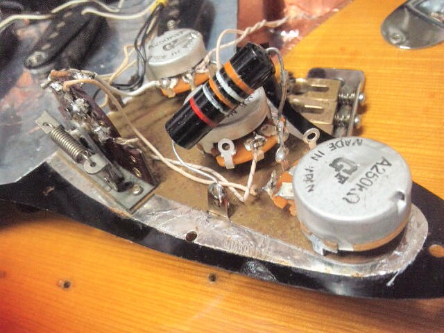 ノイズ対策にも一役買っていた。ペグにも小ぶりなロトマチックタイプが奢られノブの形状もFチューナを踏襲、ストラトの意匠を引き継いでいた。