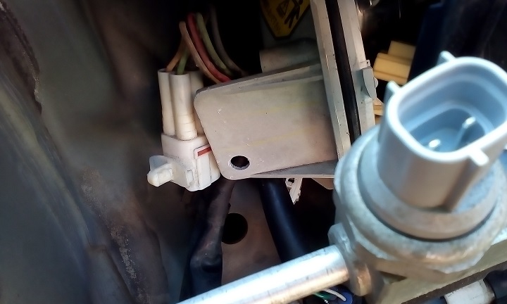 これらの自由度を確保する必要がある。レベライザーのハーネスをコネクタから外した状態。