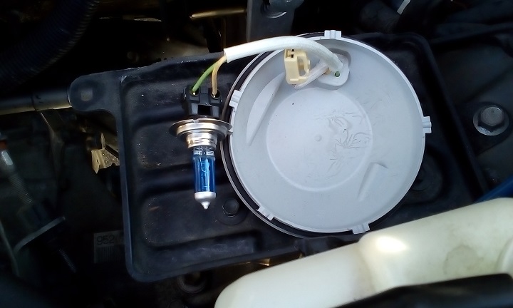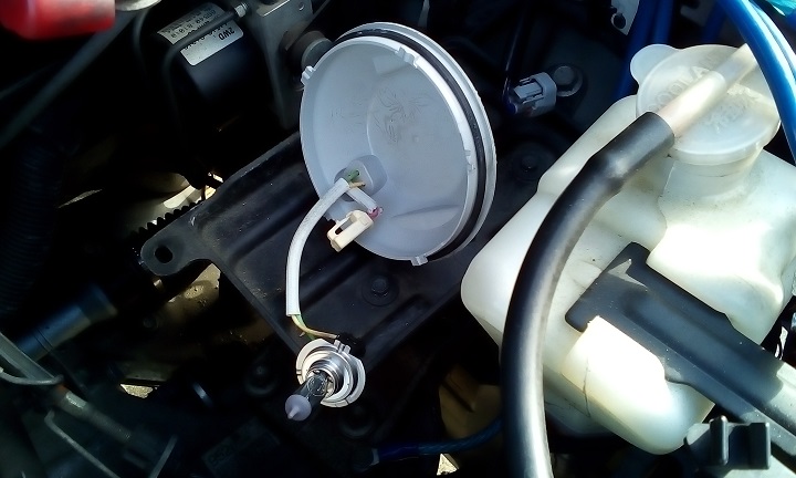 ハイビームバルブを交換。ソケットも結構固いので、ここまでバラして作業した方が確実。