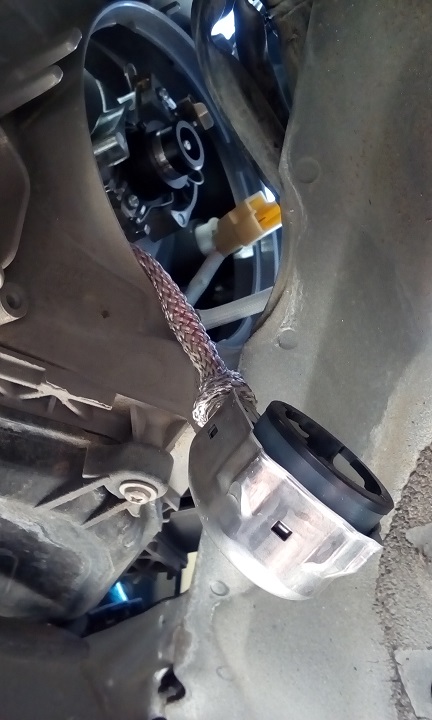 ロービーム用ハーネス取付完了。ガタなどの確認。