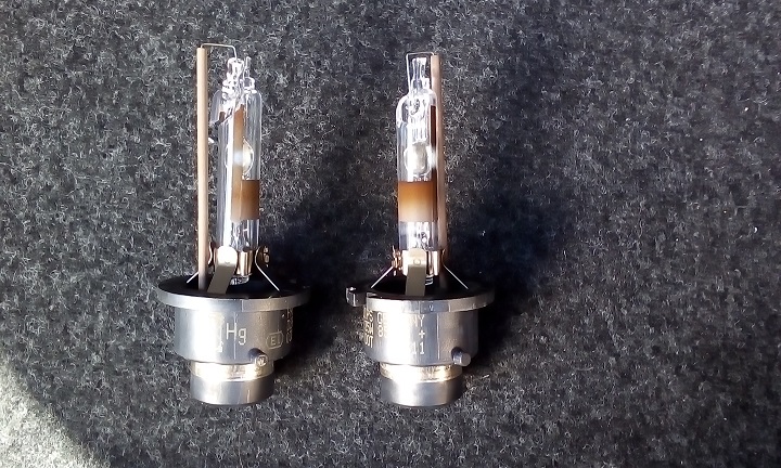 ロービーム用バーナー交換後の画像。ハイビーム取付部などを確認しておく。