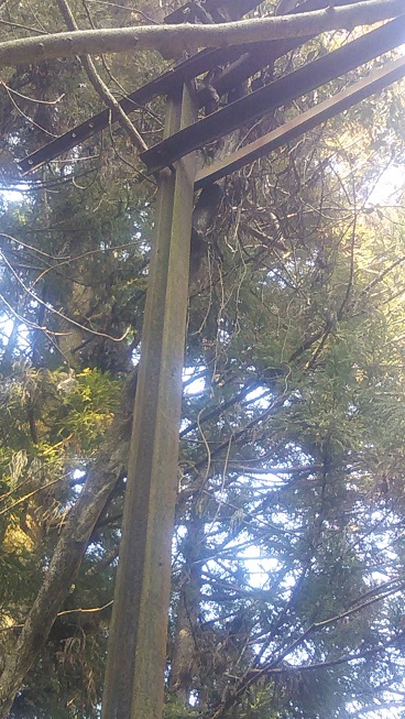 架線柱は敷設より一世紀となるが、纏わりつく植物に負けぬ堅牢な造り