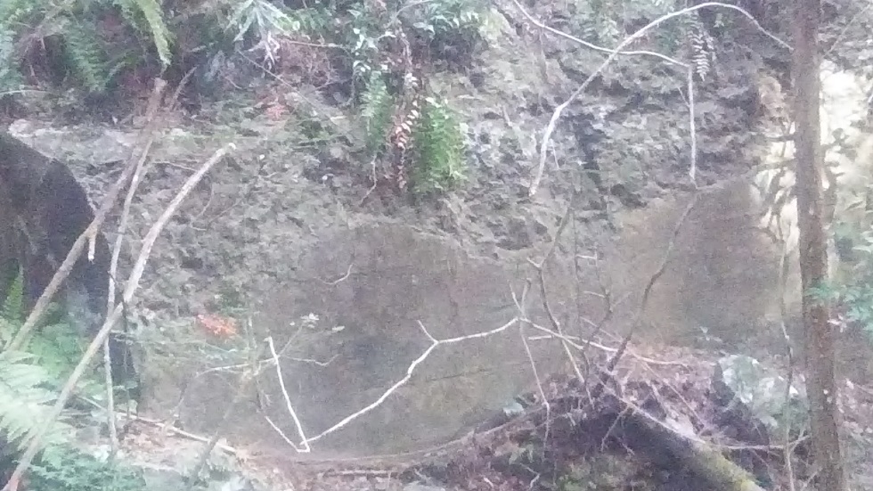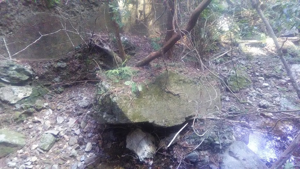 コンクリート塊の規模が分かる。新道路敷設に伴い、橋脚を撤去した際の残滓と思われるが・・・。