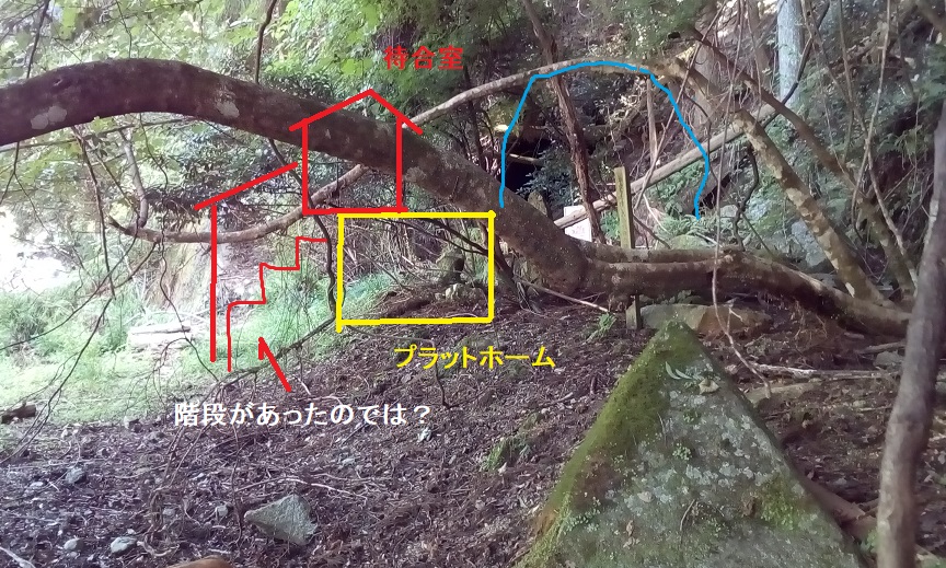 田口線跡を追いかけ始め田峯〜清崎界隈を訪れるやうになり、それでもなかなか核心に迫れなかったのが長原前駅跡である。崩れた坑口の写真や、竹藪にまみれたスペースを「このあたりに駅があった」といったレポートが散見され、現存当時の画像を見ても「現在」の状況に照らして「どのやうなレイアウト」になってゐたのかが全く見えてこない・・・それが長原前駅の第一印象であつた。
